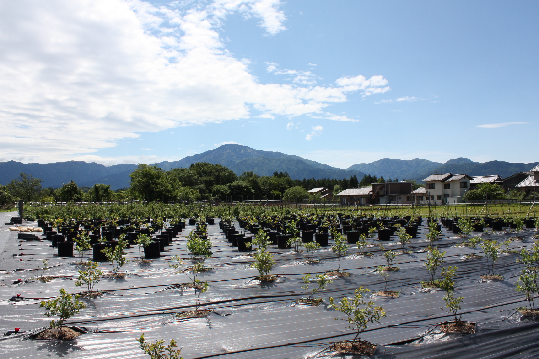 ブルーベリーの苗を平成19年の春に300本を約10アールの畑に植えつけたのが始まりで、現在では50アールの畑に約1,000本あまりのブルーベリーとラズベリーを栽培しています。